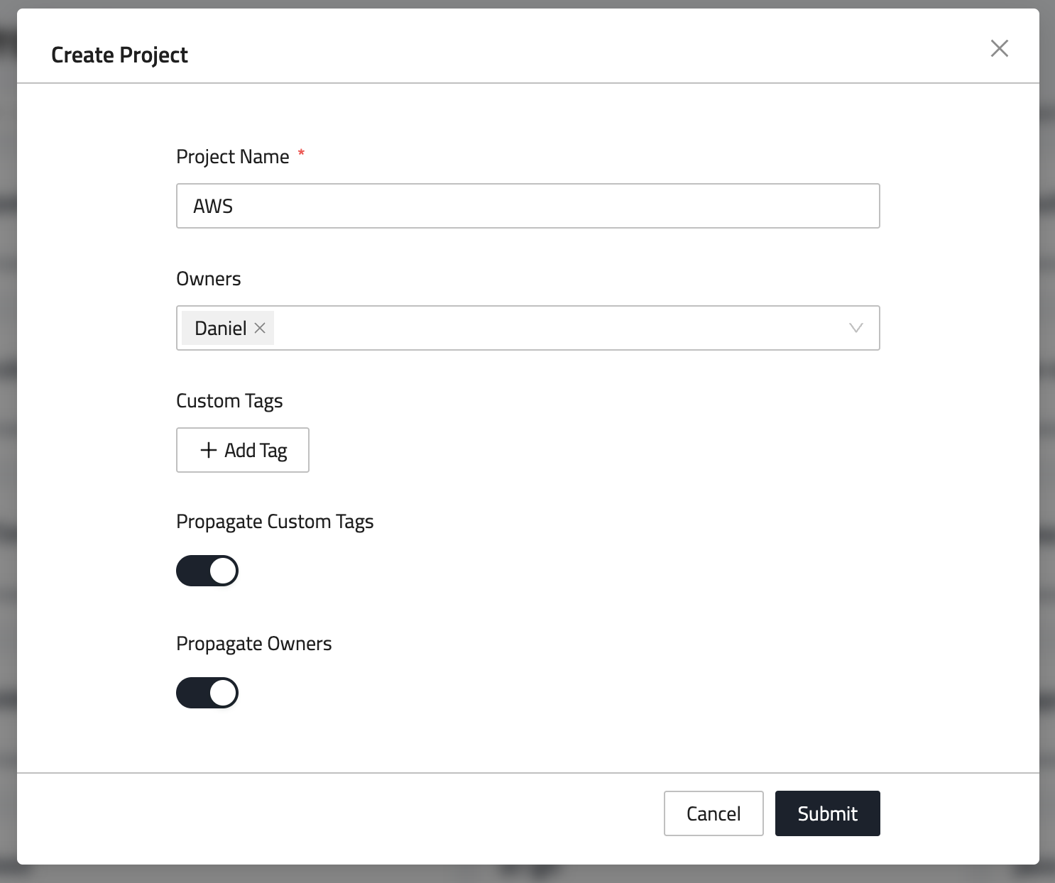 - Click Create Project and enter the required details.