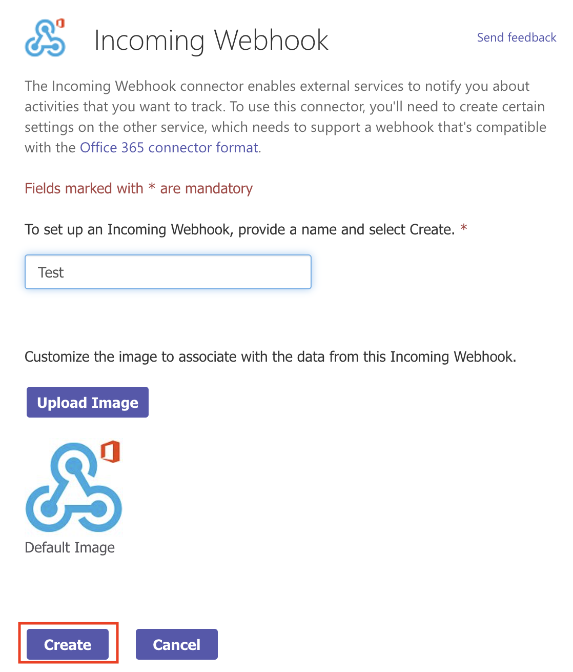 - Enter a name for the webhook. Upload an image (optional).