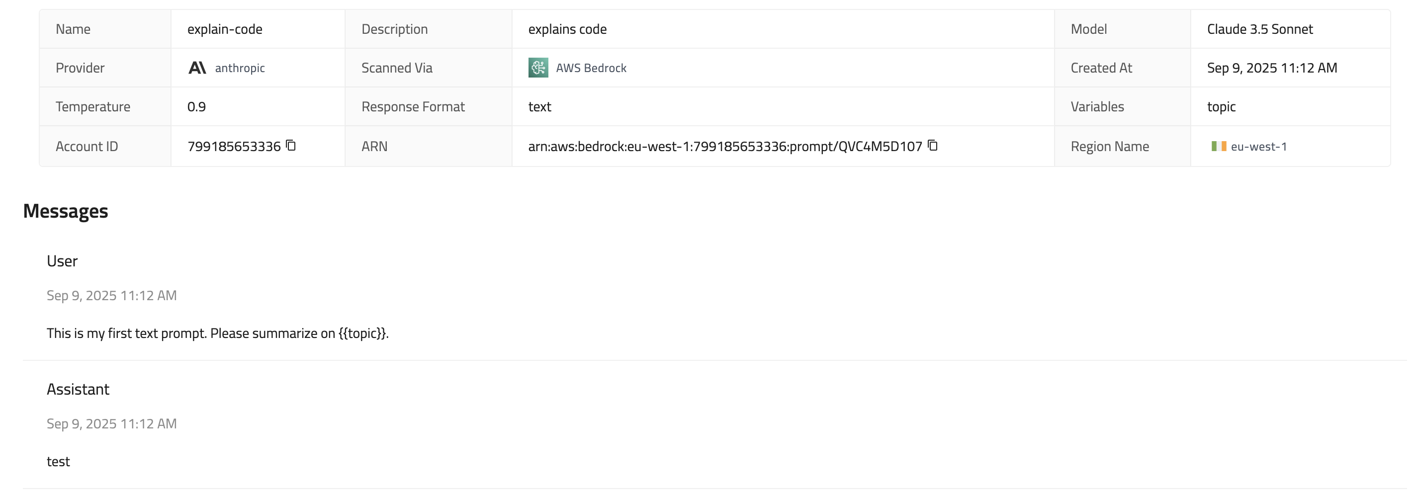 - Provider and Scanned Via: Information on who provided the prompt and how it was discovered.