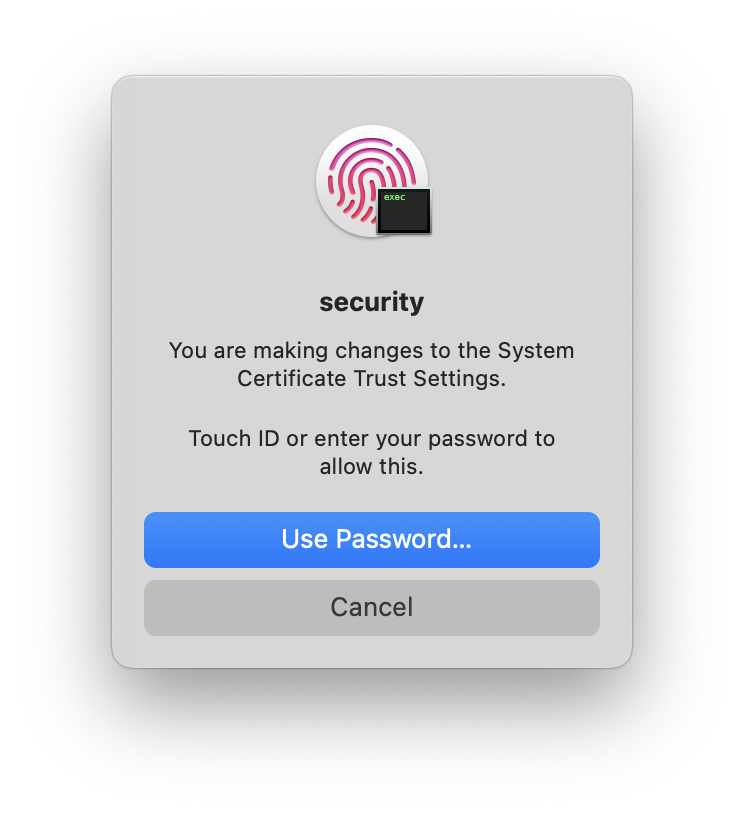 - Second, with permission to make changes oto the System Certificate Trust Settings - this is required to install the FireTail Endpoint Agent's SSL certificate into the Trust Store.