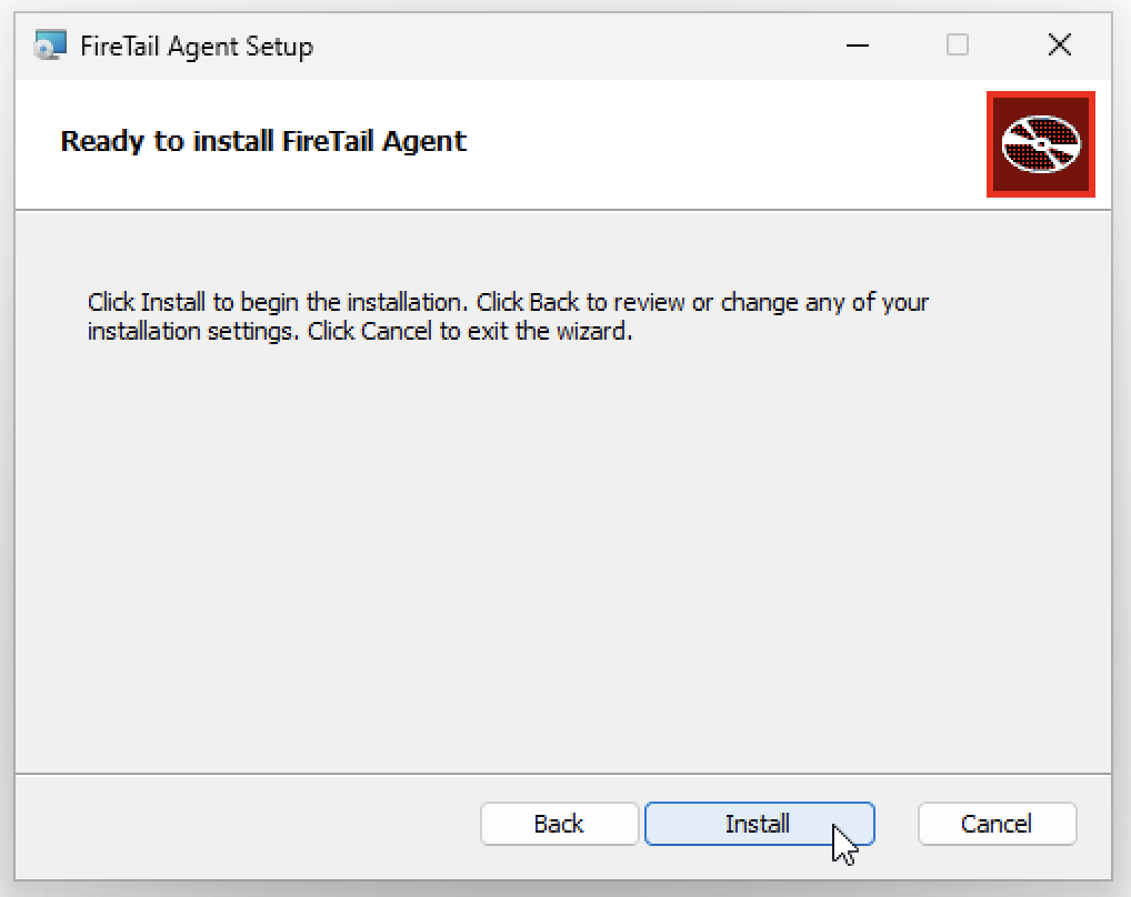 The FireTail Endpoint Agent is available for Windows as a .msi, which can be distributed to users and installed by following an installation wizard, or deployed at scale using your company's MDM software.