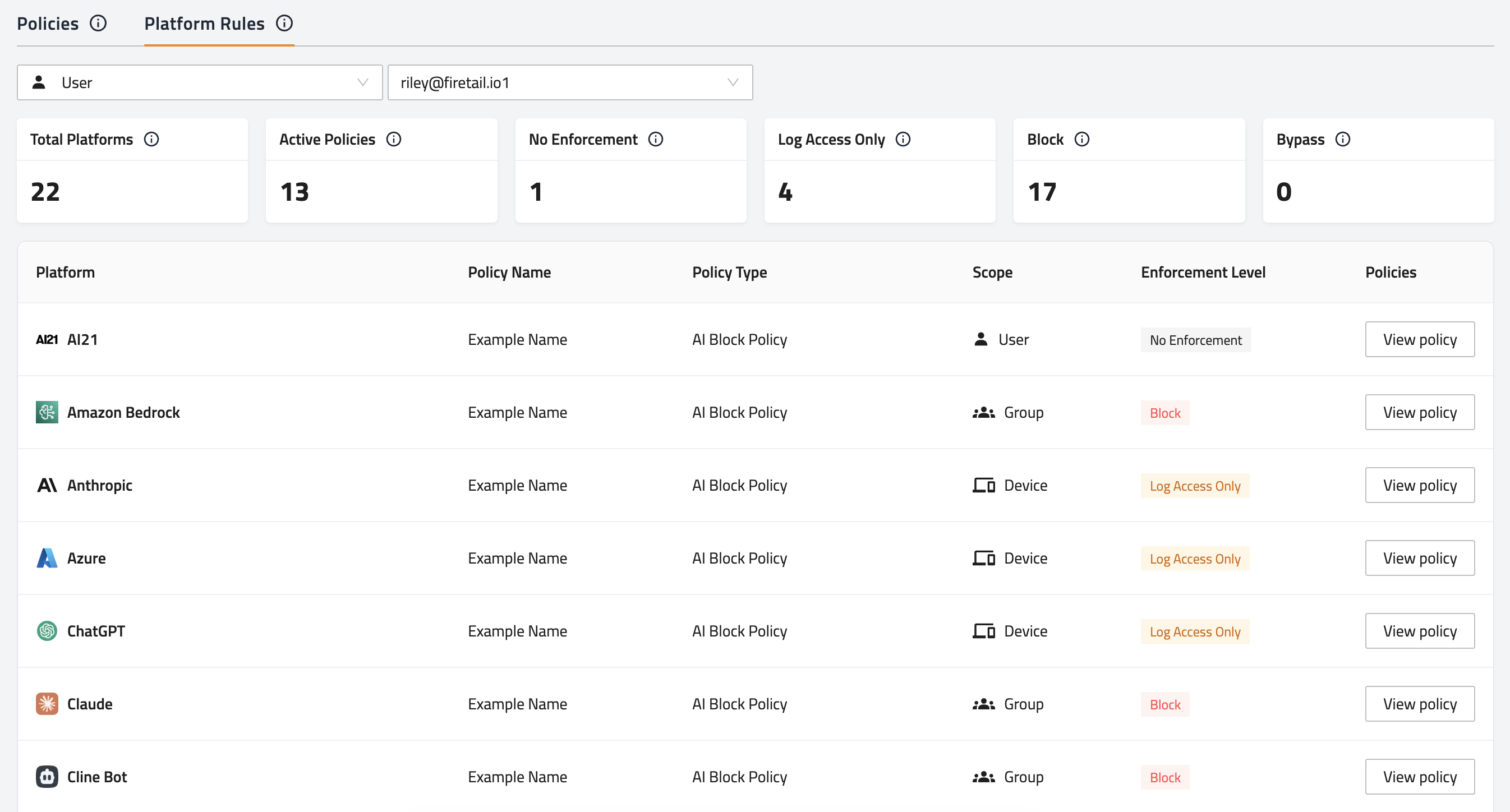 Platform rules allow you to more easily view the enforcement level applied to each platform within the selected scope, and which browser policies are applying them.