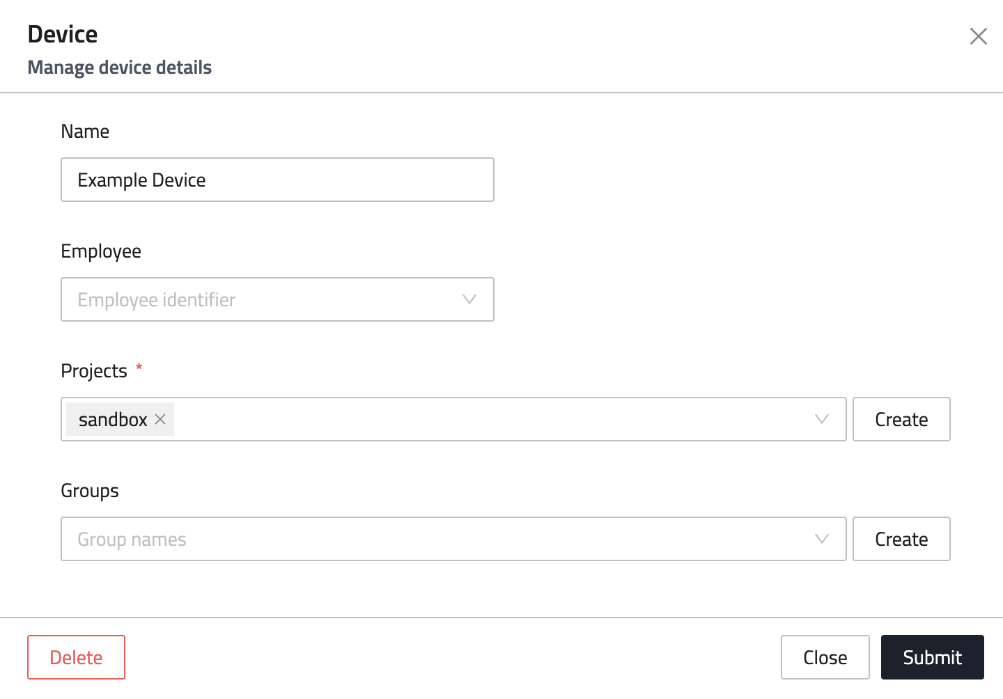 A device's details and associated resources can be updated at any time by clicking Edit Device.